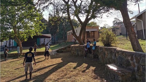 Aber erstmal zum Alltagsgeschäft: Die Kinder und Jugendlichen zwischen ca. 6 und 18 Jahren sind in fünf verschiedene Häuser nach Alter und Geschlecht aufgeteilt. Mein Arbeitsplatz ist im Haus von 14 Jungs zwischen 7 und 13 Jahren. Mein Arbeitstag beginnt um 10 Uhr und ich helfe den Hausmüttern mit den täglichen Aufgaben im Haushalt und Lebensmittel aus dem Lager zu besorgen. Danach bereite ich das Mittagessen (Sandwiches) für die Kinder vor. Zwischen 13 und 15 Uhr kommen die Kinder von der Schule. Nach dem Essen geht es an die Hausaufgaben (außer freitags) – sind die fertig, dürfen die Kids meistens im Haus und draußen spielen. Hoch im Kurs sind Fußball, Frisbee und die Spielgeräte hinterm Haus, für innen kleine Gruppenspiele und z.B. ›Papierfußball‹ mit selbstgefalteten Toren und Spielern. Um 17 Uhr ist Badezeit. Meistens bleibe ich auch zum Abendessen. Das traditionelle Essen (meist mit Pap, einem Maisbrei) schmeckt mir sehr, die Hausmütter freuen sich und wir schauen zusammen fern.