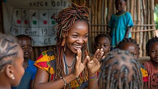 Kurse speziell für gehörlose Jugendliche unter Leitung von David Worlobah, in denen diese über HIV/Aids aufgeklärt werden. Unsere Unterstützung in 2025: 5.000 Euro