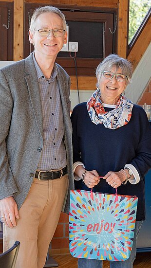 An ihrem letzten Tag dieses Besuches bei der Weltmission in Wuppertal gab es viel zu feiern: Der Geschäftsführer der VEM hatte 10-jähriges Dienstjubiläum, ein anderer Mitarbeiter ging in den Ruhestand. Zu seinem Abschied hielt er noch einmal die Andacht. Darin sagte er etwas, dass auch für »unsere« Trudi gilt: Mit dem Ruhestand endet die Erwerbszeit, nicht aber die Berufung. Das lebt Trudi und wir sind ihr sehr dankbar dafür!