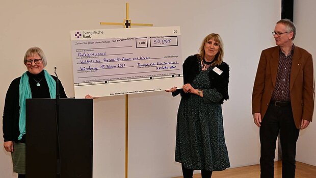 Einen großen Scheck über 50.000 Euro überreichte das Frauenwerk an die EmK-Weltmission zur Förderung von Projekten für Frauen und Mädchen.